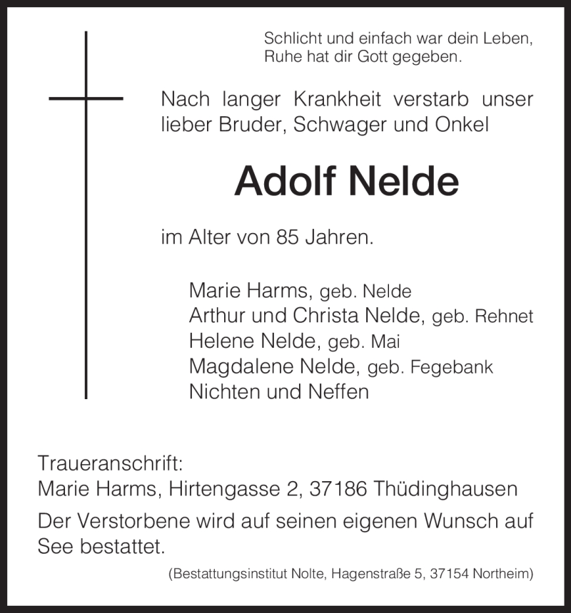 Hier finden Sie alle Traueranzeigen aus der Zeitung, die bisher für Adolf Nelde erschienen sind. Weitere Traueranzeigen, die in der Zeitung erscheinen, werden hier ebenfalls aufgelistet