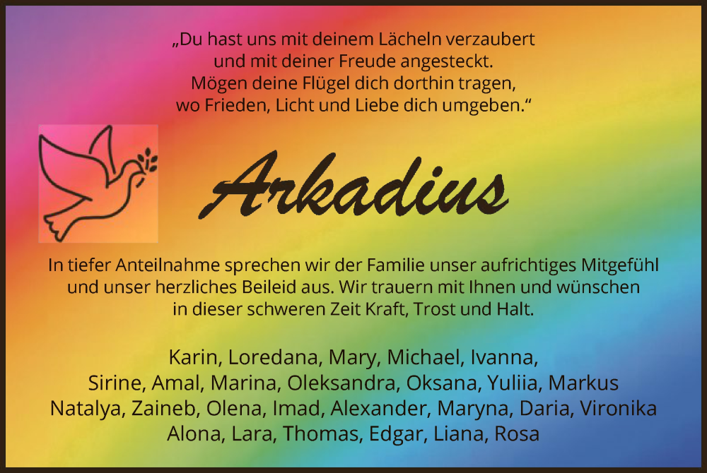 Hier finden Sie alle Traueranzeigen aus der Zeitung, die bisher für Arkadius erschienen sind. Weitere Traueranzeigen, die in der Zeitung erscheinen, werden hier ebenfalls aufgelistet