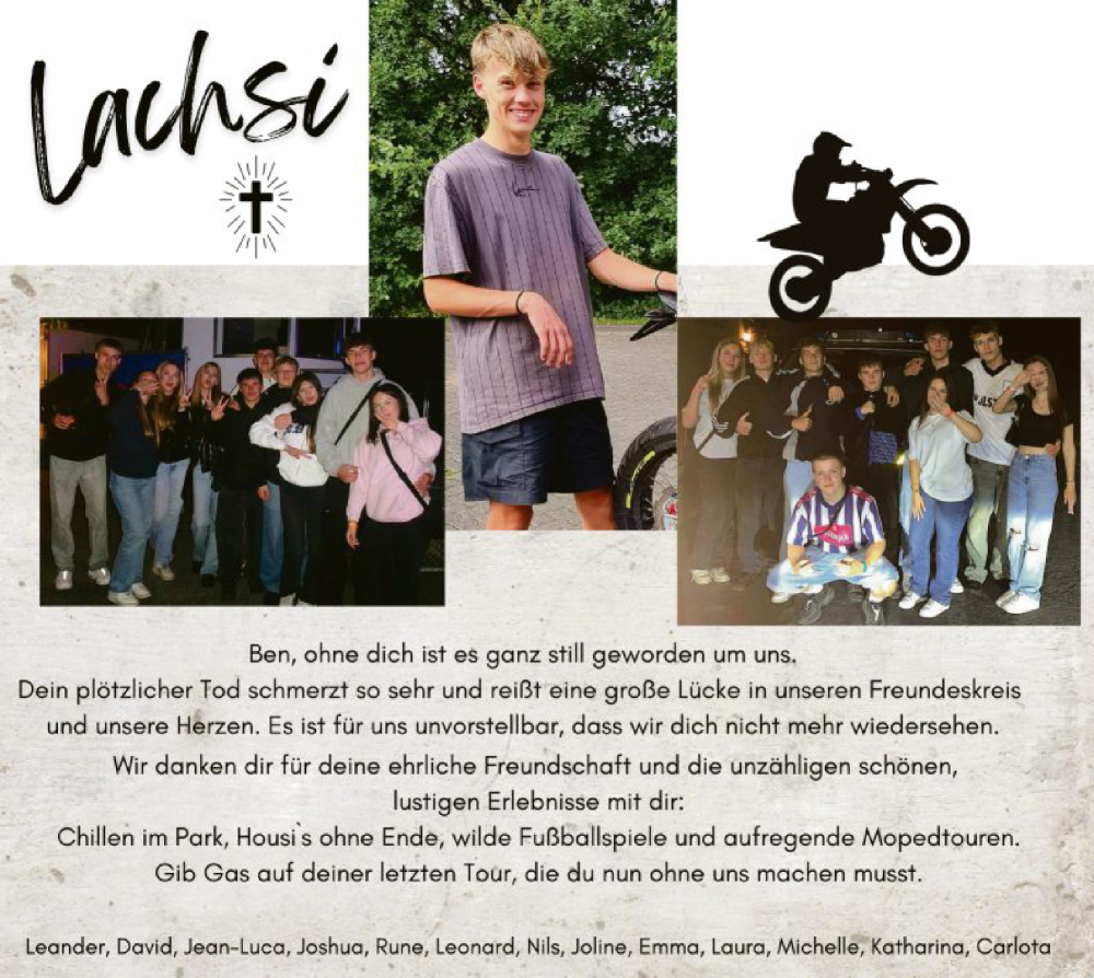 Hier finden Sie alle Traueranzeigen aus der Zeitung, die bisher für Ben erschienen sind. Weitere Traueranzeigen, die in der Zeitung erscheinen, werden hier ebenfalls aufgelistet