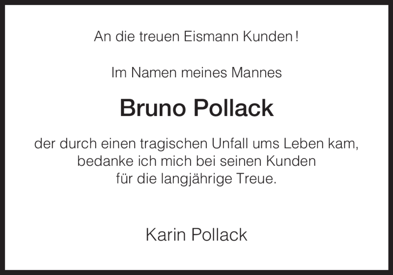 Hier finden Sie alle Traueranzeigen aus der Zeitung, die bisher für Bruno Pollack erschienen sind. Weitere Traueranzeigen, die in der Zeitung erscheinen, werden hier ebenfalls aufgelistet