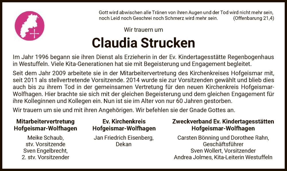 Hier finden Sie alle Traueranzeigen aus der Zeitung, die bisher für Claudia Strucken erschienen sind. Weitere Traueranzeigen, die in der Zeitung erscheinen, werden hier ebenfalls aufgelistet