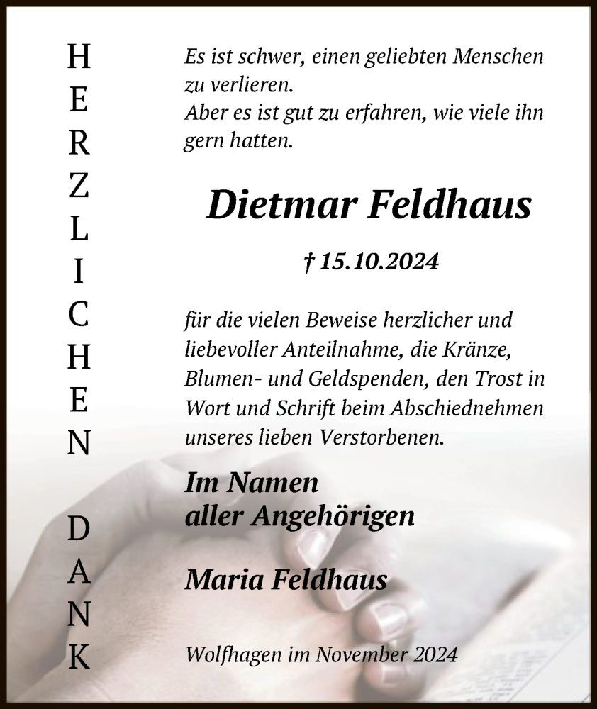 Hier finden Sie alle Traueranzeigen aus der Zeitung, die bisher für Dietmar Feldhaus erschienen sind. Weitere Traueranzeigen, die in der Zeitung erscheinen, werden hier ebenfalls aufgelistet