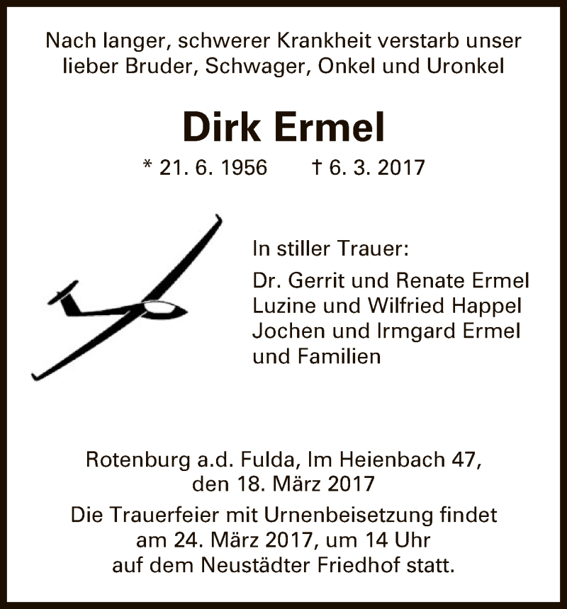 Hier finden Sie alle Traueranzeigen aus der Zeitung, die bisher für Dirk Ermel erschienen sind. Weitere Traueranzeigen, die in der Zeitung erscheinen, werden hier ebenfalls aufgelistet