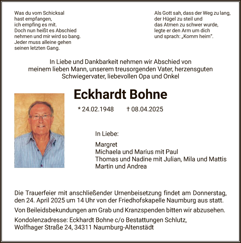 Hier finden Sie alle Traueranzeigen aus der Zeitung, die bisher für Eckhardt Bohne erschienen sind. Weitere Traueranzeigen, die in der Zeitung erscheinen, werden hier ebenfalls aufgelistet