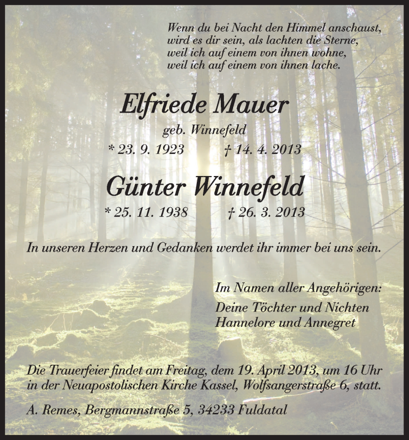 Hier finden Sie alle Traueranzeigen aus der Zeitung, die bisher für Elfriede und Günter erschienen sind. Weitere Traueranzeigen, die in der Zeitung erscheinen, werden hier ebenfalls aufgelistet