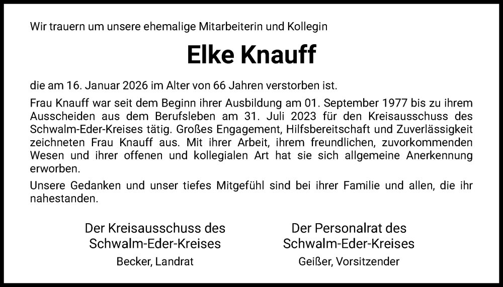 Hier finden Sie alle Traueranzeigen aus der Zeitung, die bisher für Elke Knauff erschienen sind. Weitere Traueranzeigen, die in der Zeitung erscheinen, werden hier ebenfalls aufgelistet