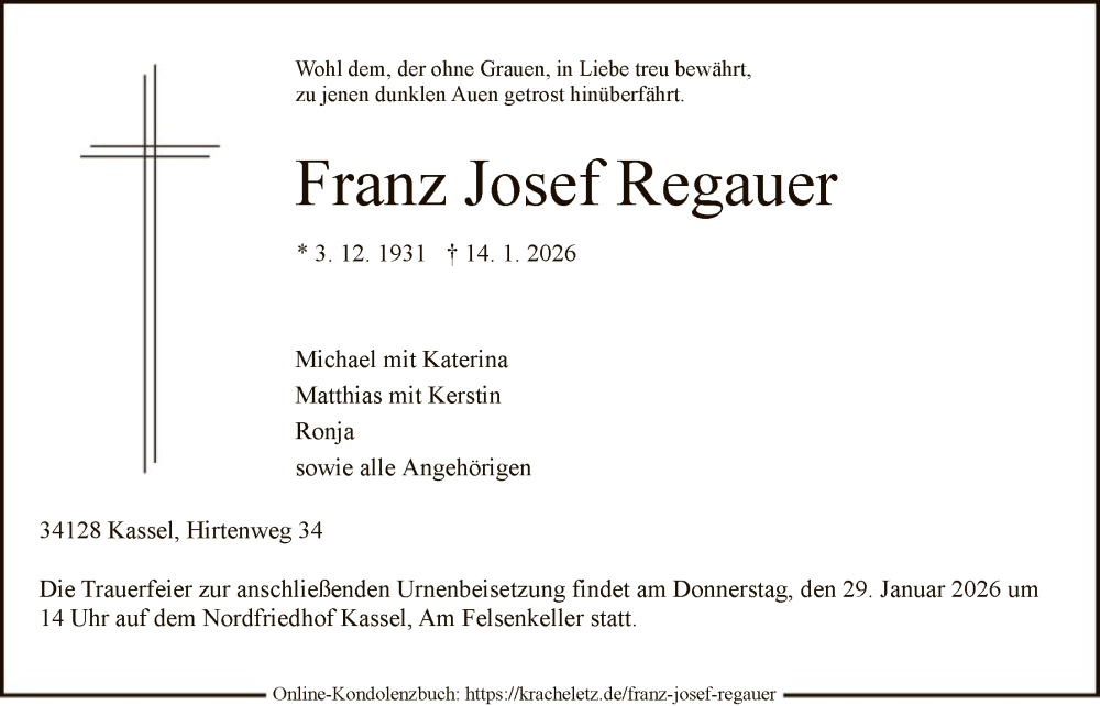 Hier finden Sie alle Traueranzeigen aus der Zeitung, die bisher für Franz Josef Regauer erschienen sind. Weitere Traueranzeigen, die in der Zeitung erscheinen, werden hier ebenfalls aufgelistet