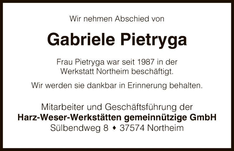Hier finden Sie alle Traueranzeigen aus der Zeitung, die bisher für Gabriele Pietryga erschienen sind. Weitere Traueranzeigen, die in der Zeitung erscheinen, werden hier ebenfalls aufgelistet