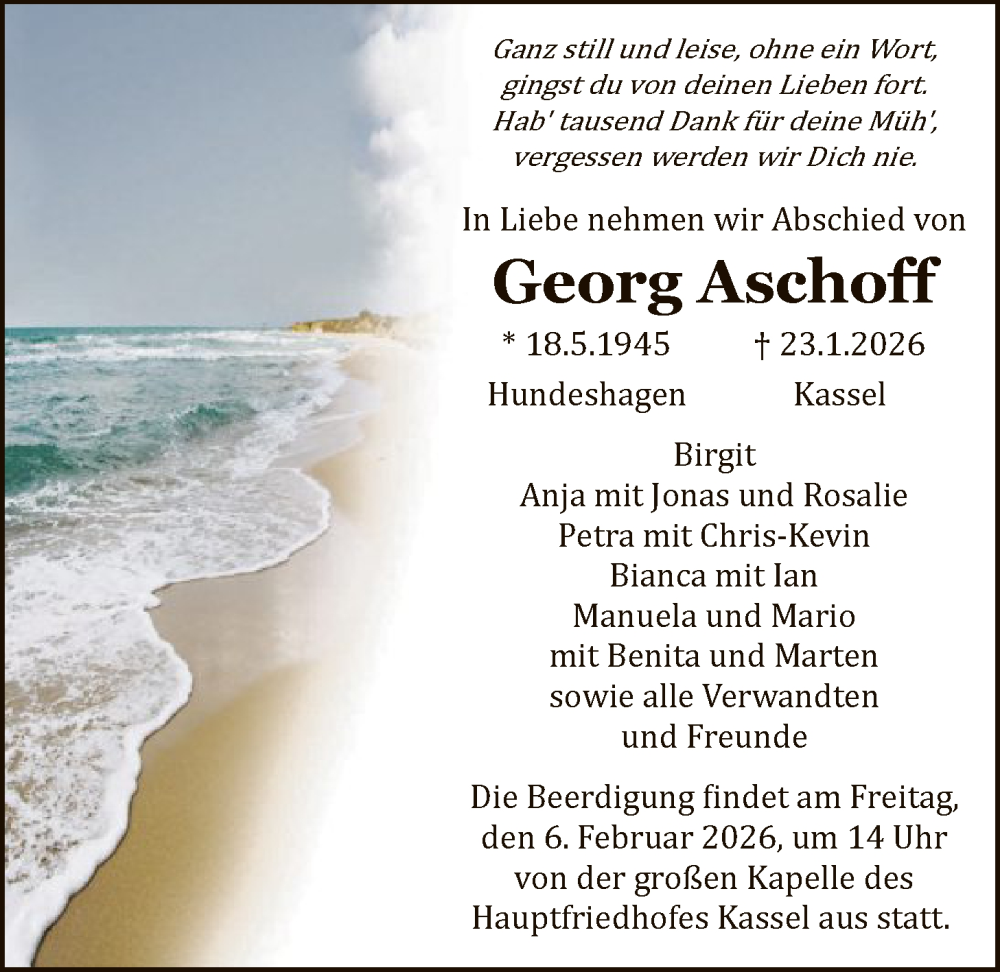 Hier finden Sie alle Traueranzeigen aus der Zeitung, die bisher für Georg Aschoff erschienen sind. Weitere Traueranzeigen, die in der Zeitung erscheinen, werden hier ebenfalls aufgelistet