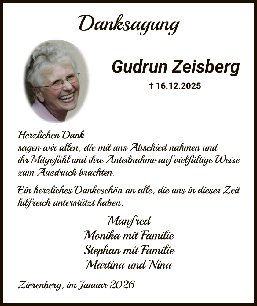 Hier finden Sie alle Traueranzeigen aus der Zeitung, die bisher für Gudrun Zeisberg erschienen sind. Weitere Traueranzeigen, die in der Zeitung erscheinen, werden hier ebenfalls aufgelistet