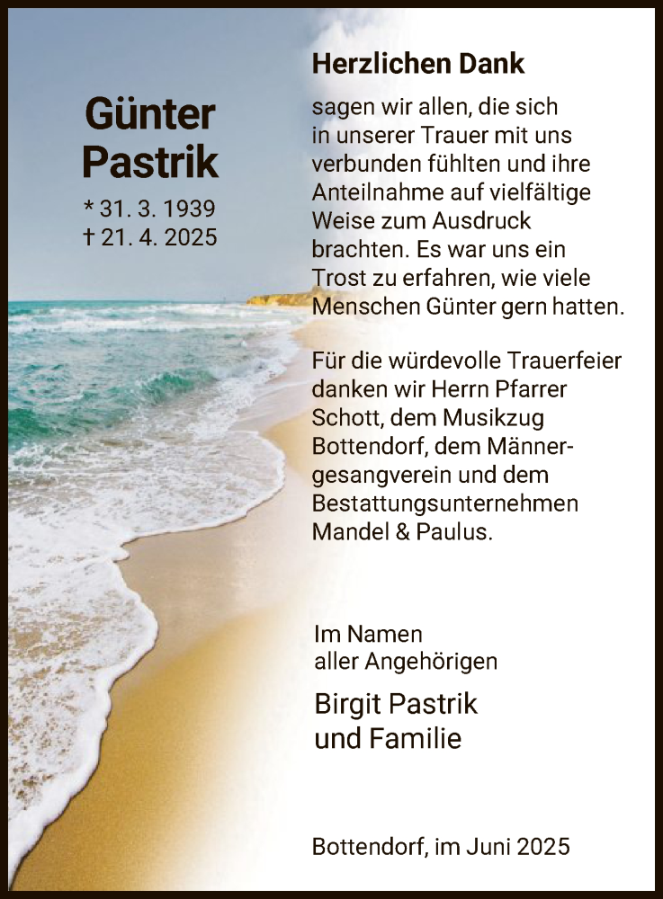 Hier finden Sie alle Traueranzeigen aus der Zeitung, die bisher für Günter Pastrik erschienen sind. Weitere Traueranzeigen, die in der Zeitung erscheinen, werden hier ebenfalls aufgelistet