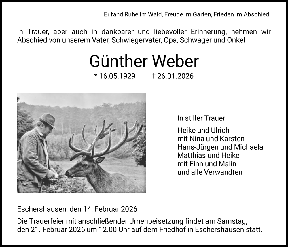 Hier finden Sie alle Traueranzeigen aus der Zeitung, die bisher für Günther Weber erschienen sind. Weitere Traueranzeigen, die in der Zeitung erscheinen, werden hier ebenfalls aufgelistet