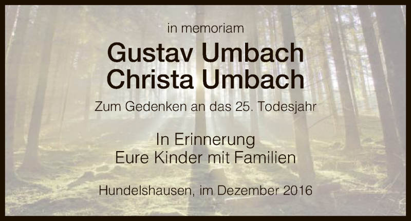 Hier finden Sie alle Traueranzeigen aus der Zeitung, die bisher für Gustav und Christa Umbach erschienen sind. Weitere Traueranzeigen, die in der Zeitung erscheinen, werden hier ebenfalls aufgelistet