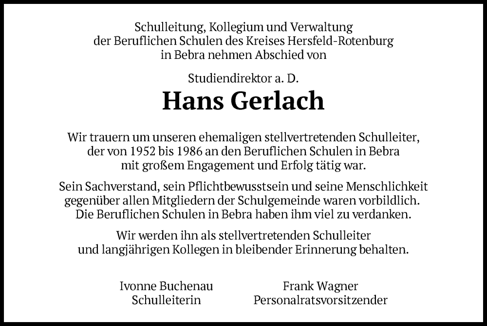 Hier finden Sie alle Traueranzeigen aus der Zeitung, die bisher für Hans Gerlach erschienen sind. Weitere Traueranzeigen, die in der Zeitung erscheinen, werden hier ebenfalls aufgelistet