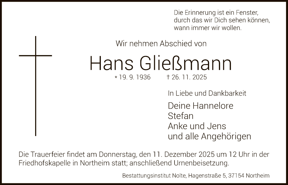 Hier finden Sie alle Traueranzeigen aus der Zeitung, die bisher für Hans Gließmann erschienen sind. Weitere Traueranzeigen, die in der Zeitung erscheinen, werden hier ebenfalls aufgelistet