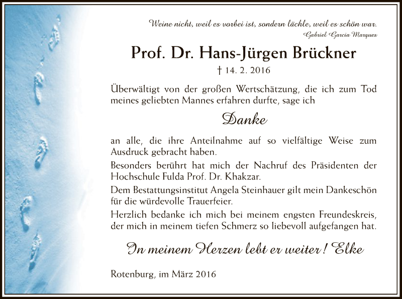 Hier finden Sie alle Traueranzeigen aus der Zeitung, die bisher für Hans Jürgen Brückner erschienen sind. Weitere Traueranzeigen, die in der Zeitung erscheinen, werden hier ebenfalls aufgelistet