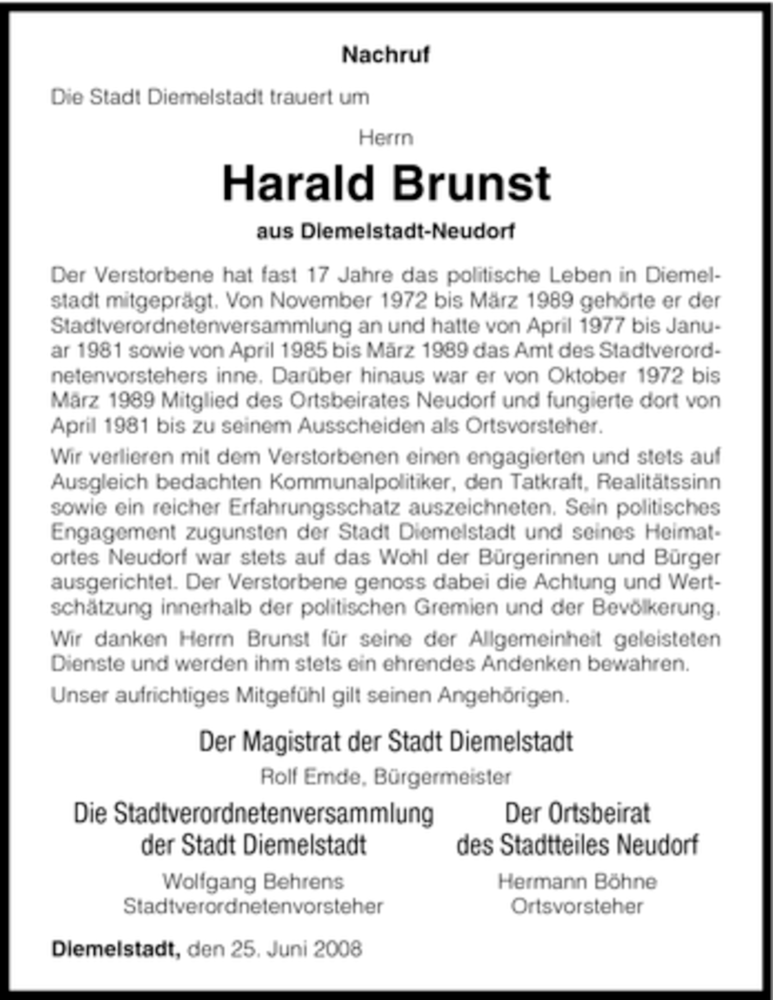 Hier finden Sie alle Traueranzeigen aus der Zeitung, die bisher für Harald Brunst erschienen sind. Weitere Traueranzeigen, die in der Zeitung erscheinen, werden hier ebenfalls aufgelistet