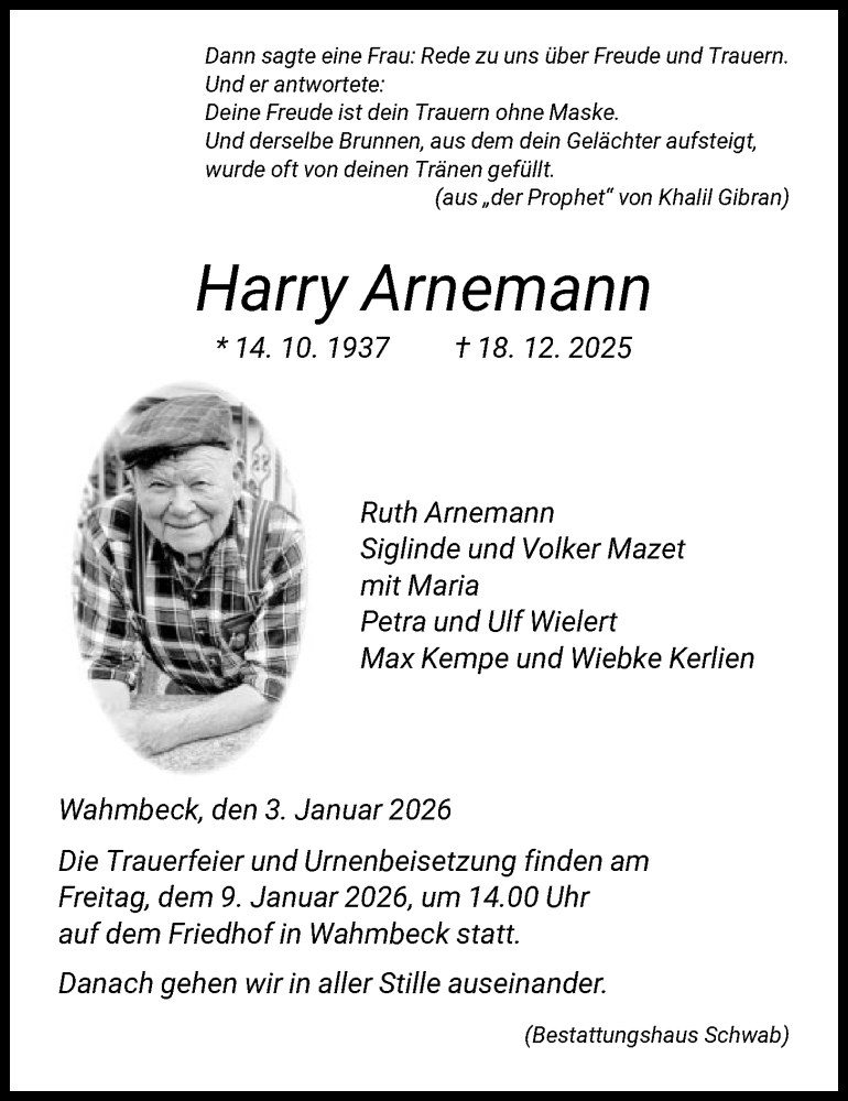 Hier finden Sie alle Traueranzeigen aus der Zeitung, die bisher für Harry Arnemann erschienen sind. Weitere Traueranzeigen, die in der Zeitung erscheinen, werden hier ebenfalls aufgelistet