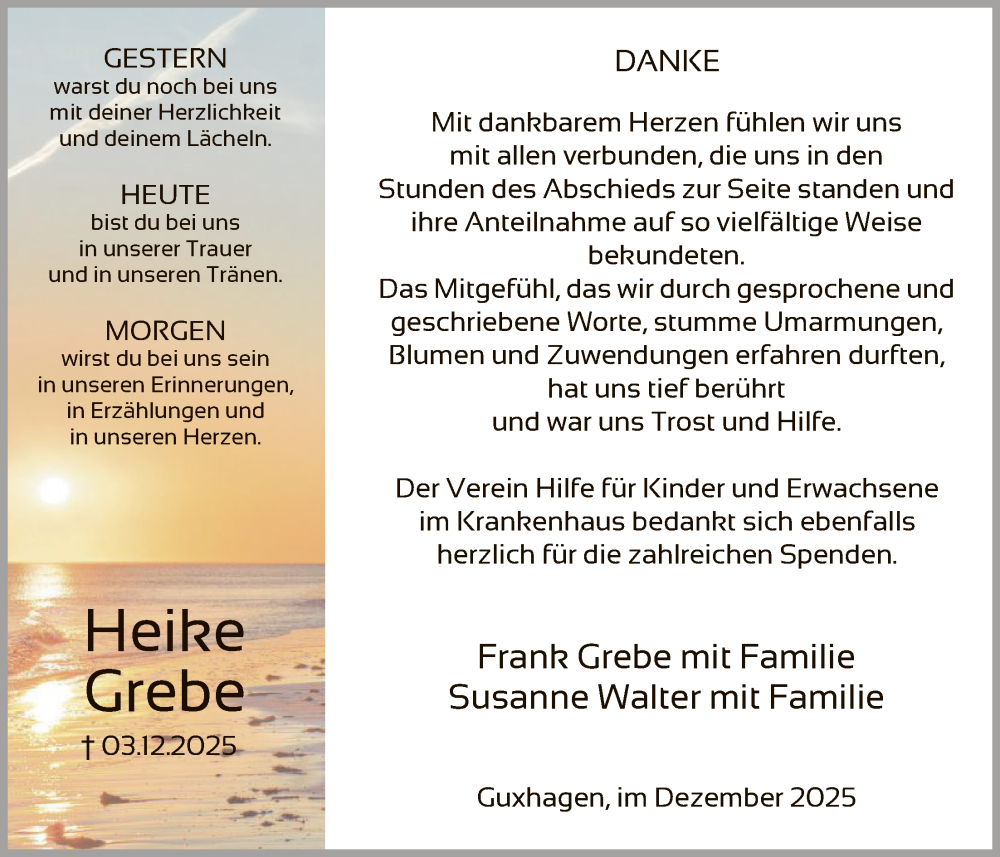 Hier finden Sie alle Traueranzeigen aus der Zeitung, die bisher für Heike Grebe erschienen sind. Weitere Traueranzeigen, die in der Zeitung erscheinen, werden hier ebenfalls aufgelistet