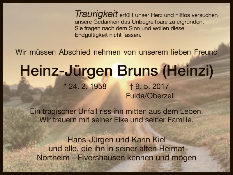 Hier finden Sie alle Traueranzeigen aus der Zeitung, die bisher für Heinz-Jürgen Bruns erschienen sind. Weitere Traueranzeigen, die in der Zeitung erscheinen, werden hier ebenfalls aufgelistet