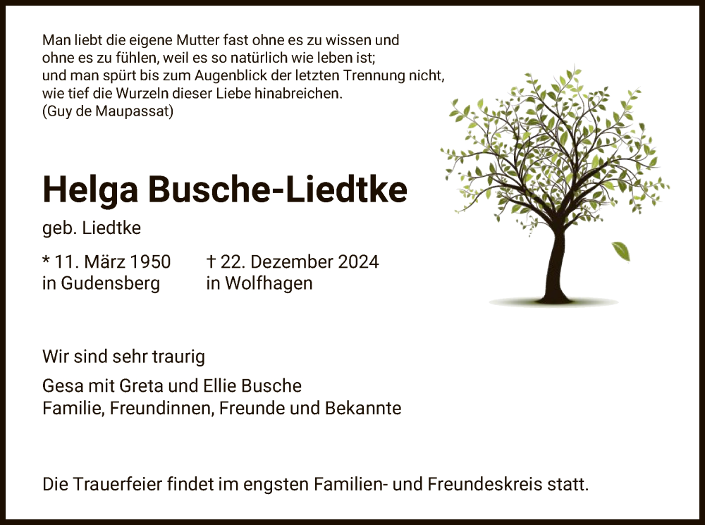 Hier finden Sie alle Traueranzeigen aus der Zeitung, die bisher für Helga Busche-Liedtke erschienen sind. Weitere Traueranzeigen, die in der Zeitung erscheinen, werden hier ebenfalls aufgelistet