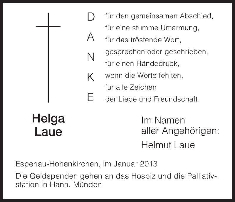 Hier finden Sie alle Traueranzeigen aus der Zeitung, die bisher für Helga Laue erschienen sind. Weitere Traueranzeigen, die in der Zeitung erscheinen, werden hier ebenfalls aufgelistet