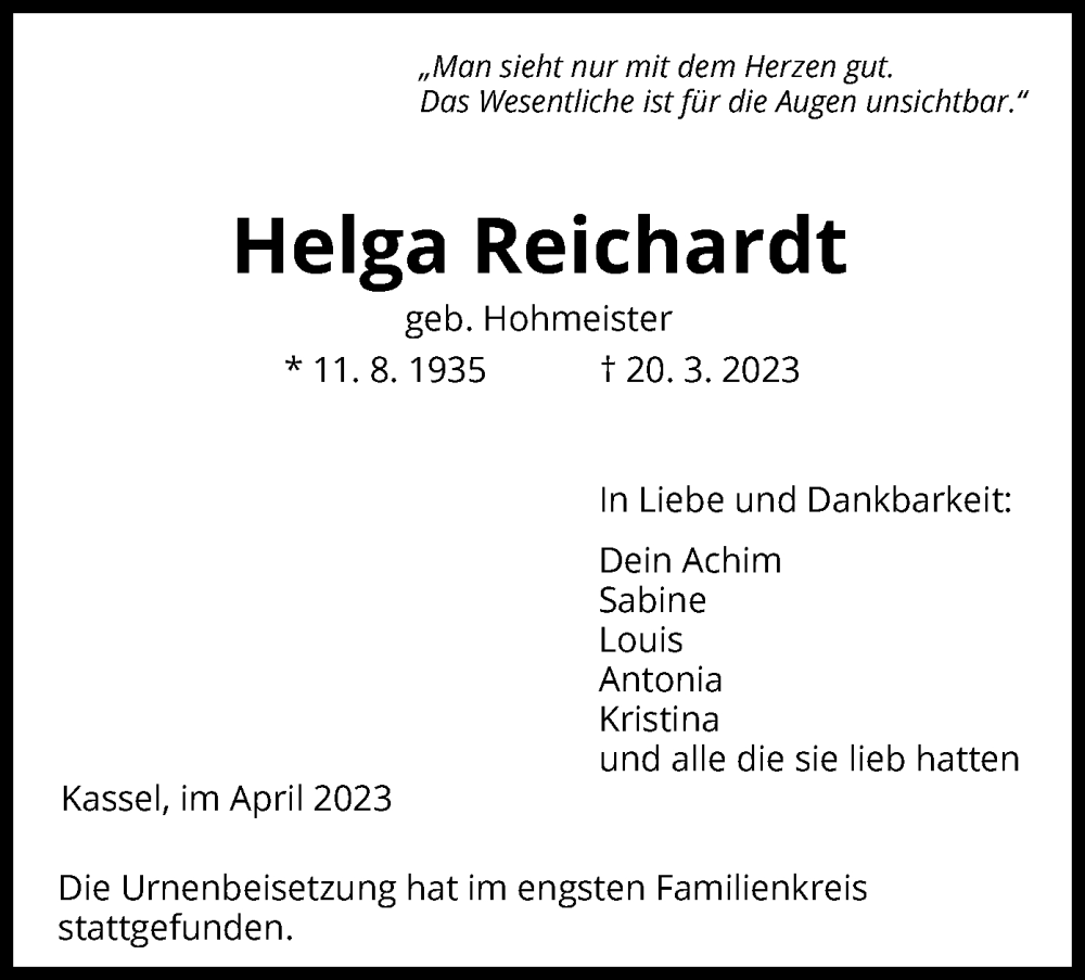 Hier finden Sie alle Traueranzeigen aus der Zeitung, die bisher für Helga Reichardt erschienen sind. Weitere Traueranzeigen, die in der Zeitung erscheinen, werden hier ebenfalls aufgelistet