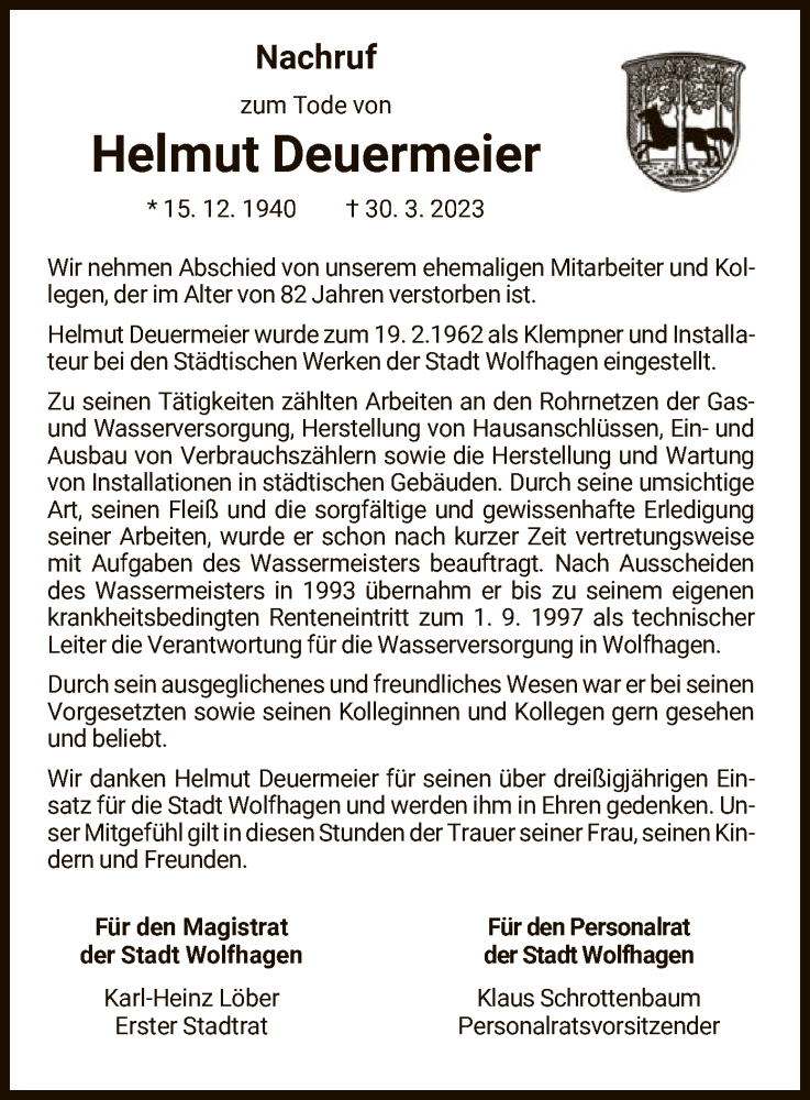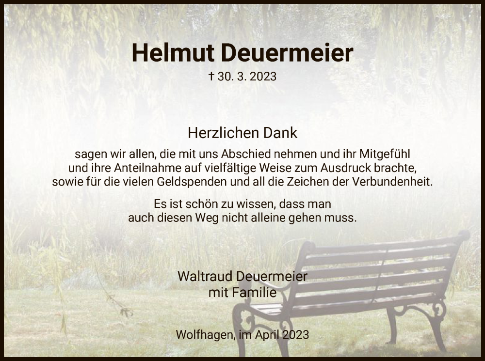 Hier finden Sie alle Traueranzeigen aus der Zeitung, die bisher für Helmut Deuermeier erschienen sind. Weitere Traueranzeigen, die in der Zeitung erscheinen, werden hier ebenfalls aufgelistet
