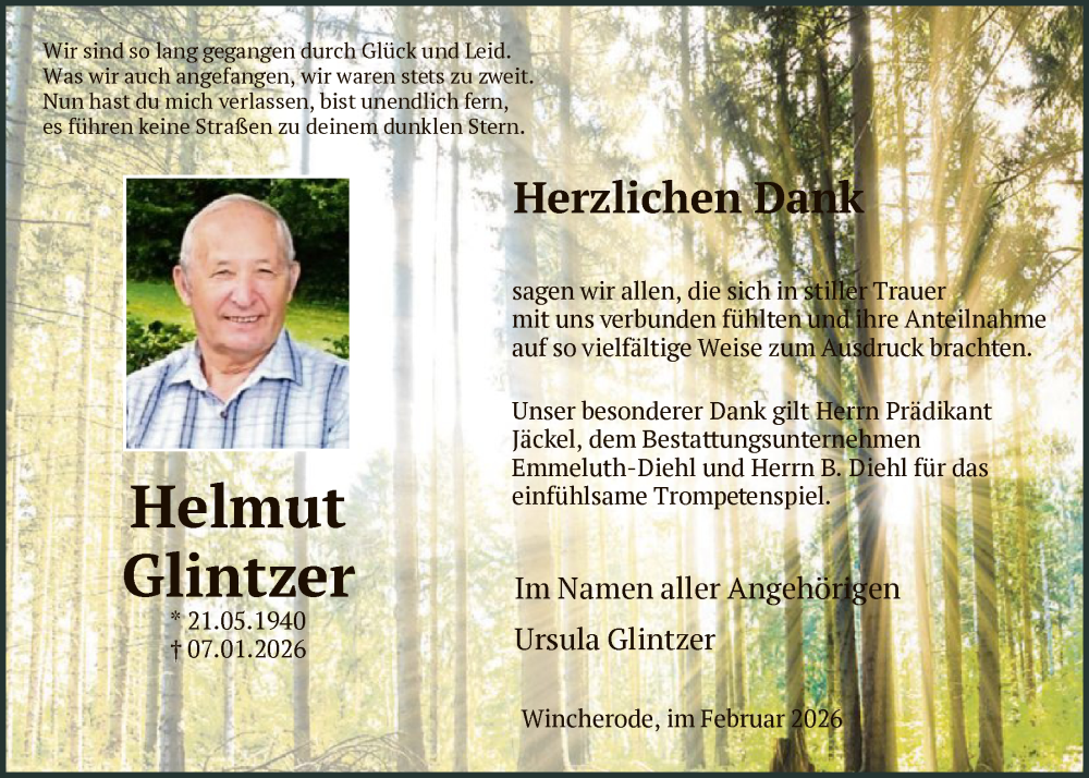 Hier finden Sie alle Traueranzeigen aus der Zeitung, die bisher für Helmut Glintzer erschienen sind. Weitere Traueranzeigen, die in der Zeitung erscheinen, werden hier ebenfalls aufgelistet