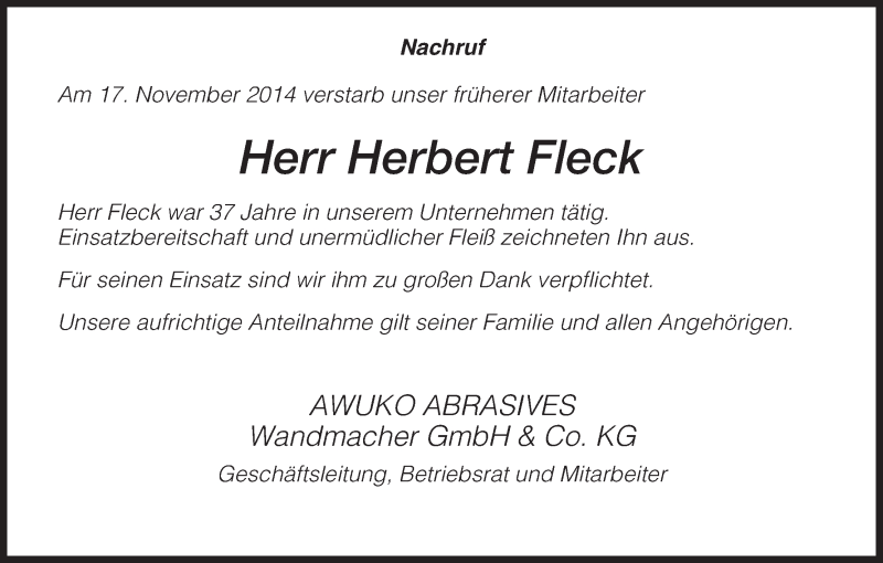 Hier finden Sie alle Traueranzeigen aus der Zeitung, die bisher für Herbert Fleck erschienen sind. Weitere Traueranzeigen, die in der Zeitung erscheinen, werden hier ebenfalls aufgelistet