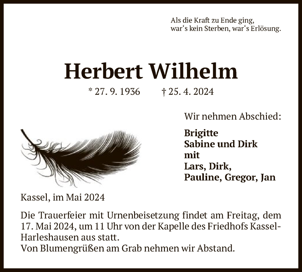 Hier finden Sie alle Traueranzeigen aus der Zeitung, die bisher für Herbert Wilhelm erschienen sind. Weitere Traueranzeigen, die in der Zeitung erscheinen, werden hier ebenfalls aufgelistet
