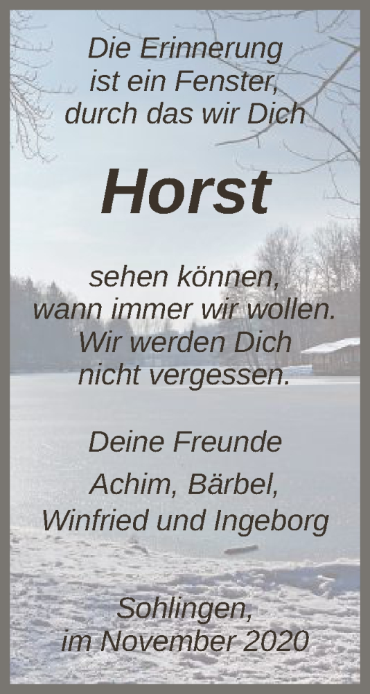Hier finden Sie alle Traueranzeigen aus der Zeitung, die bisher für Horst erschienen sind. Weitere Traueranzeigen, die in der Zeitung erscheinen, werden hier ebenfalls aufgelistet