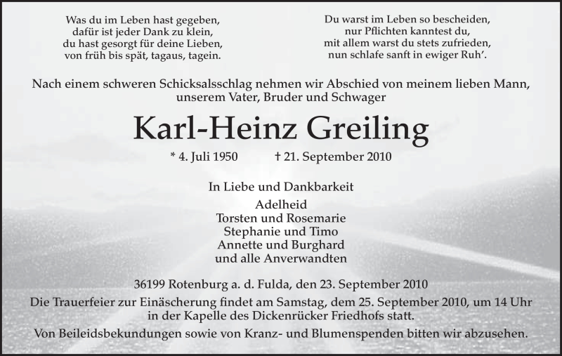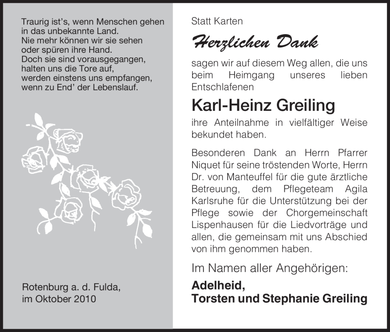 Hier finden Sie alle Traueranzeigen aus der Zeitung, die bisher für Karl-Heinz Greiling erschienen sind. Weitere Traueranzeigen, die in der Zeitung erscheinen, werden hier ebenfalls aufgelistet