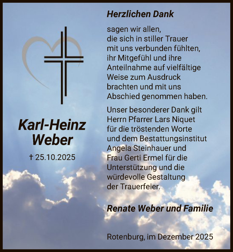 Hier finden Sie alle Traueranzeigen aus der Zeitung, die bisher für Karl-Heinz Weber erschienen sind. Weitere Traueranzeigen, die in der Zeitung erscheinen, werden hier ebenfalls aufgelistet