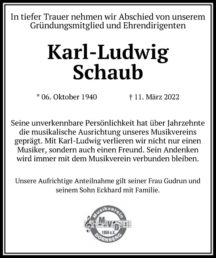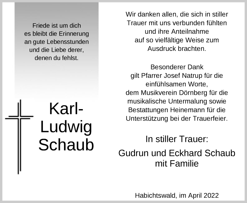 Hier finden Sie alle Traueranzeigen aus der Zeitung, die bisher für Karl-Ludwig Schaub erschienen sind. Weitere Traueranzeigen, die in der Zeitung erscheinen, werden hier ebenfalls aufgelistet