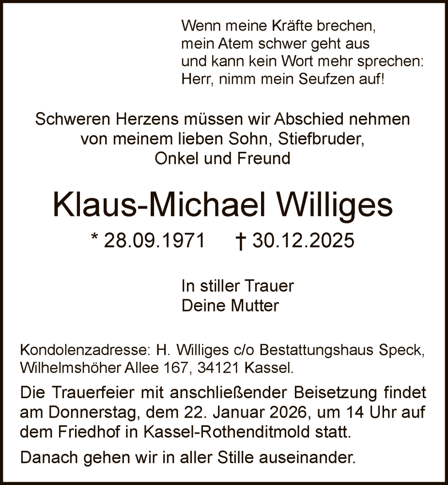 Hier finden Sie alle Traueranzeigen aus der Zeitung, die bisher für Klaus-Michael Williges erschienen sind. Weitere Traueranzeigen, die in der Zeitung erscheinen, werden hier ebenfalls aufgelistet