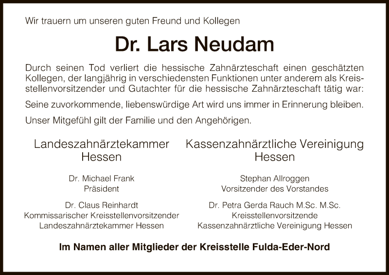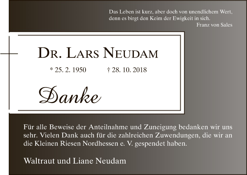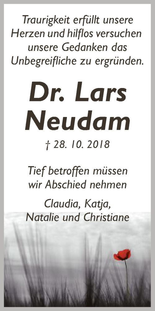 Hier finden Sie alle Traueranzeigen aus der Zeitung, die bisher für Lars Neudam erschienen sind. Weitere Traueranzeigen, die in der Zeitung erscheinen, werden hier ebenfalls aufgelistet
