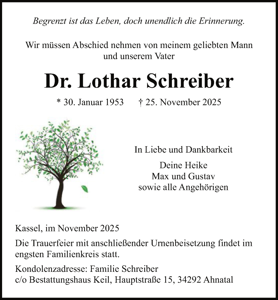 Hier finden Sie alle Traueranzeigen aus der Zeitung, die bisher für Lothar Schreiber erschienen sind. Weitere Traueranzeigen, die in der Zeitung erscheinen, werden hier ebenfalls aufgelistet