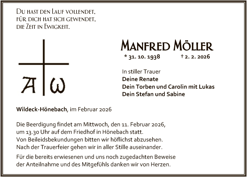 Hier finden Sie alle Traueranzeigen aus der Zeitung, die bisher für Manfred Möller erschienen sind. Weitere Traueranzeigen, die in der Zeitung erscheinen, werden hier ebenfalls aufgelistet