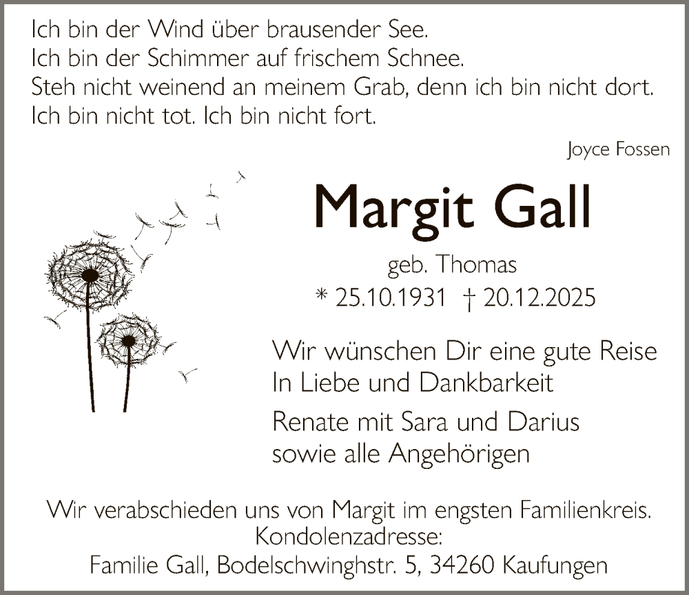 Hier finden Sie alle Traueranzeigen aus der Zeitung, die bisher für Margit Gall erschienen sind. Weitere Traueranzeigen, die in der Zeitung erscheinen, werden hier ebenfalls aufgelistet