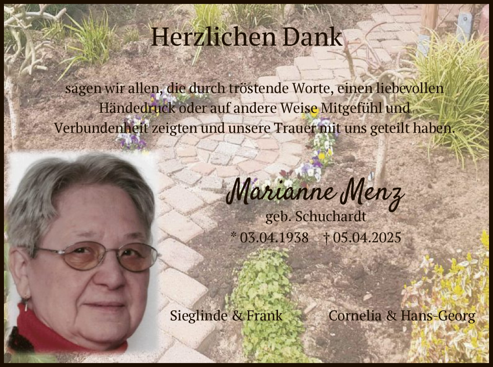 Hier finden Sie alle Traueranzeigen aus der Zeitung, die bisher für Marianne Menze erschienen sind. Weitere Traueranzeigen, die in der Zeitung erscheinen, werden hier ebenfalls aufgelistet