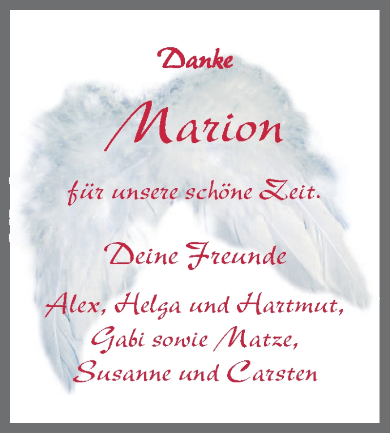 Hier finden Sie alle Traueranzeigen aus der Zeitung, die bisher für Marion erschienen sind. Weitere Traueranzeigen, die in der Zeitung erscheinen, werden hier ebenfalls aufgelistet