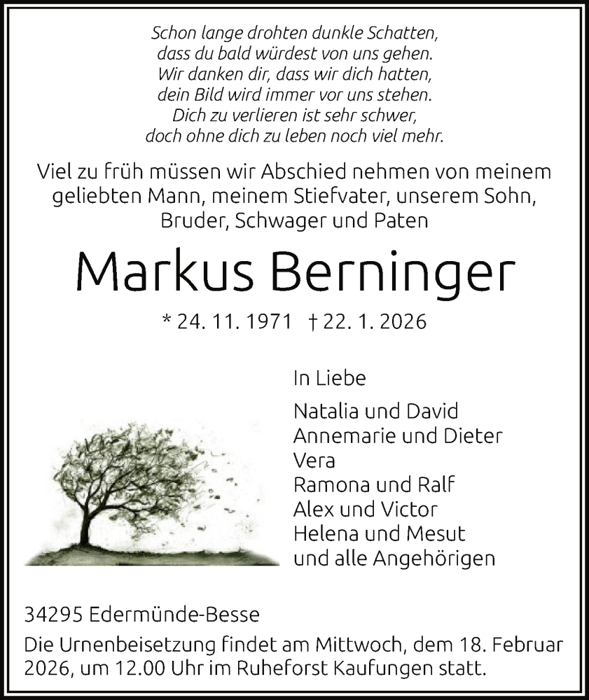 Hier finden Sie alle Traueranzeigen aus der Zeitung, die bisher für Markus Berninger erschienen sind. Weitere Traueranzeigen, die in der Zeitung erscheinen, werden hier ebenfalls aufgelistet