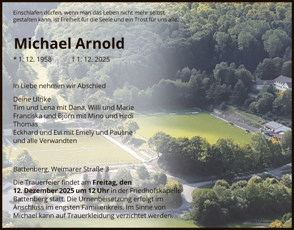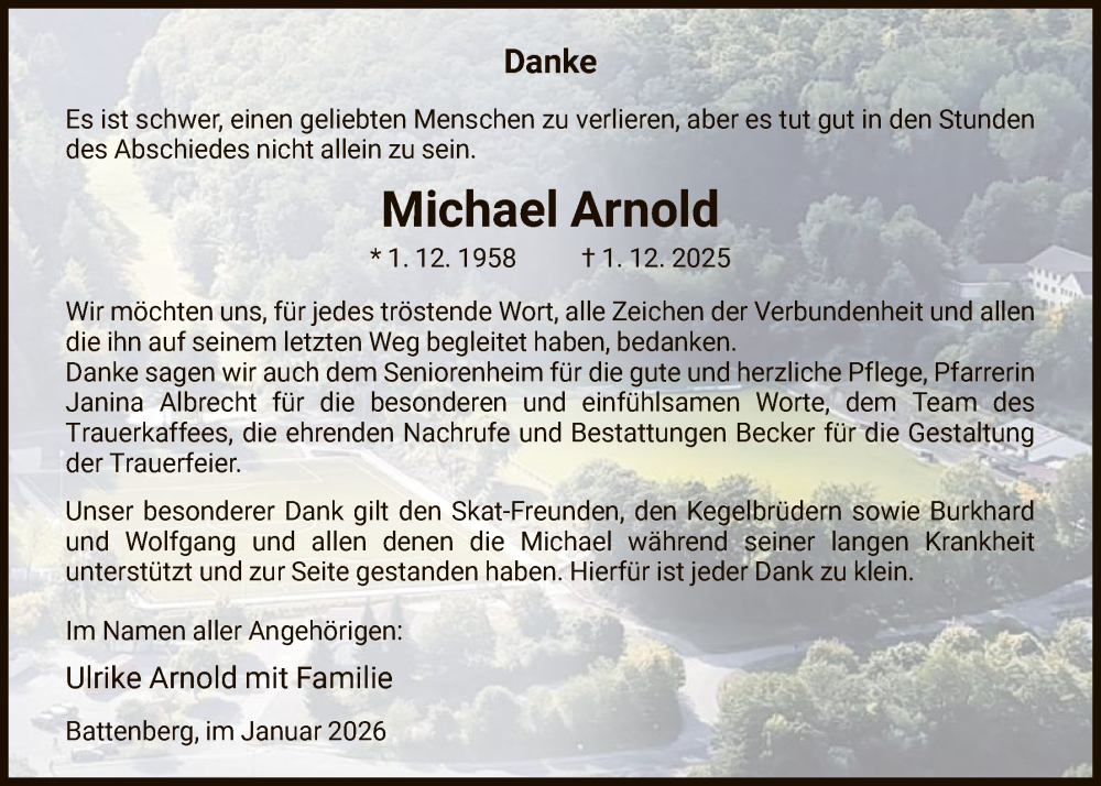 Hier finden Sie alle Traueranzeigen aus der Zeitung, die bisher für Michael Arnold erschienen sind. Weitere Traueranzeigen, die in der Zeitung erscheinen, werden hier ebenfalls aufgelistet