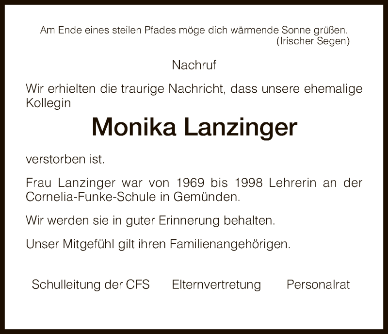 Hier finden Sie alle Traueranzeigen aus der Zeitung, die bisher für Monika Lanzinger erschienen sind. Weitere Traueranzeigen, die in der Zeitung erscheinen, werden hier ebenfalls aufgelistet