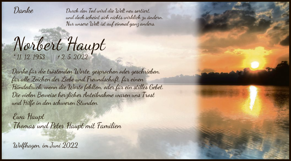 Hier finden Sie alle Traueranzeigen aus der Zeitung, die bisher für Norbert Haupt erschienen sind. Weitere Traueranzeigen, die in der Zeitung erscheinen, werden hier ebenfalls aufgelistet