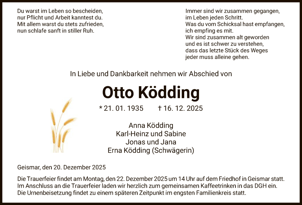 Hier finden Sie alle Traueranzeigen aus der Zeitung, die bisher für Otto Ködding erschienen sind. Weitere Traueranzeigen, die in der Zeitung erscheinen, werden hier ebenfalls aufgelistet