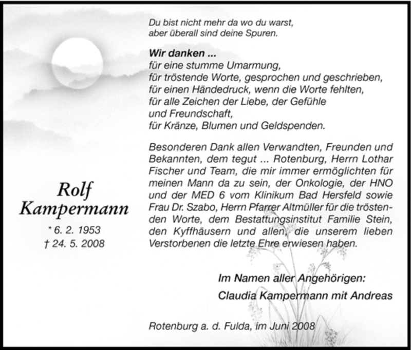 Hier finden Sie alle Traueranzeigen aus der Zeitung, die bisher für Rolf Kampermann erschienen sind. Weitere Traueranzeigen, die in der Zeitung erscheinen, werden hier ebenfalls aufgelistet
