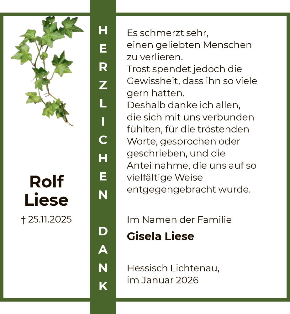 Hier finden Sie alle Traueranzeigen aus der Zeitung, die bisher für Rolf Liese erschienen sind. Weitere Traueranzeigen, die in der Zeitung erscheinen, werden hier ebenfalls aufgelistet