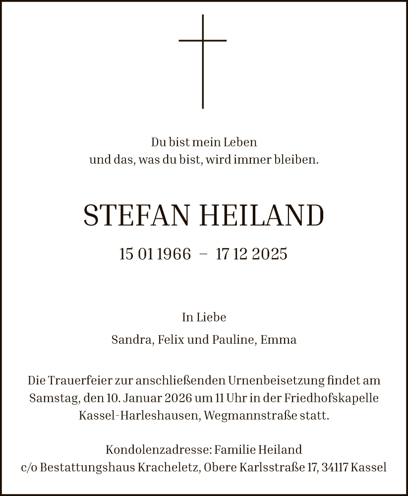 Hier finden Sie alle Traueranzeigen aus der Zeitung, die bisher für Stefan Heiland erschienen sind. Weitere Traueranzeigen, die in der Zeitung erscheinen, werden hier ebenfalls aufgelistet